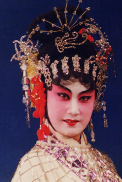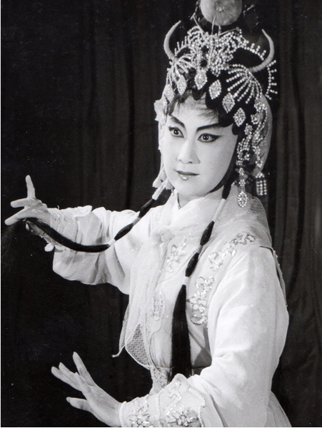 一、耳濡目染爱粤剧 我的家乡广东顺德,是粤剧之乡,它孕育了薛觉先、马师曾、白驹荣等蜚声中外的粤剧大师和众多粤剧名伶。当地发烧友组织私伙局,闲时演唱粤曲,自娱自乐,男女老少都喜爱睇(看)大戏。 我童年长在广州,那时广州有很多间大戏院,每晚都上演大戏,节假日还会加演日场。我常常拉着大人们的衫尾去戏院睇(看)大戏。我的舅父白寄萍,舅母杨玫瑰都是粤剧名角,他们主演的《九件衣》、《火烧红莲寺》等戏都演得非常精彩。我喜欢跑到后台看他们化妆,更喜欢他们的戏服头饰,觉得既漂亮又有趣。当他们休班,把自己购置的戏服头饰放回家中时,我与几个同玩乐的小女孩,偷偷把头饰戴上,再披块大毛巾,学着艺人演戏的架式,手舞足蹈,梦想着去做公主和小姐哩。 二、学戏先要学做人 1956年,我到梧州探望外婆和小姨。一天,不知外婆从何处知道剧团招收学徒,带我去报考。到了戏院,剧团的前辈们坐在座位当考官,我们一百几十个小孩,一个个轮着被叫上舞台,唱支歌,伸展伸展双手,弯弯腰,踢踢腿。过了十天左右,我被正式录取,成为梧州市实践粤剧团的学习生。