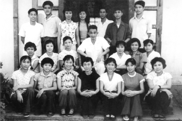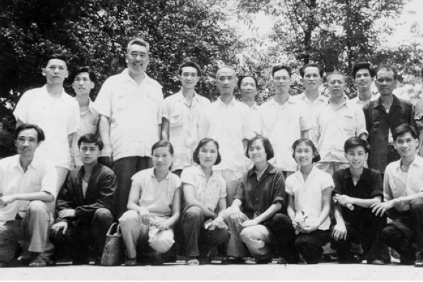 1964年在南宁,昆剧刘传衡老师(第二排右四)和粤剧班的学员合照。第一排右三为陈小珠。 hr