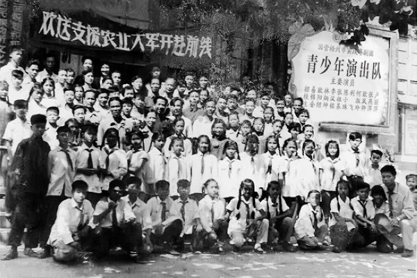 四、随团巡演长技艺 当学习生的第四天,我们便要随剧团到柳州、南宁巡回演出。那时到柳州要坐两天的船。傍晚时分,河面吹拂着阵阵凉风,我们随前辈们到船头乘凉,男孩子与前辈们玩牌,女孩子在一旁说悄悄话,听前辈们讲梨园轶事。 不久,我们见几个男孩子正为前辈们捶骨,原来他们玩牌输了,听说要捶成千上万下,看到他们一副可怜兮兮的样子,着实可笑。前辈卢醒能舒心惬意地享受着捶骨的滋味,仰望着头顶明亮的月光,来了兴致,用手打着叮板,一字一句的教他们唱《游龟山》的主题曲:“渔更隐现,只见月当天,照住渔女面······”待他们学唱完,众师姐妹也跟着学旦角的唱段:“抱恨寸心乱,小舟泣对尸骸实觉心悲酸······”月光皎洁行旅夜,我们有幸感受前辈们精湛的唱腔艺术并得以言传身教,心中倍感荣幸。 随团巡演的日子,我们见证了梧州市实践粤剧团最兴旺的时光。剧团在柳州和南宁各演一个月,场场满座。1957年,我团创编的神话粤剧《百鸟衣》和重新整理的传统粤剧《双结缘》在广州和珠江三角洲等地巡回演出,所到之处,深受欢迎。剧团当时还是民营公助,自负盈亏,五天发一次工资。戏班行话,一天工资叫一圈。那时票房收入好,前辈们五天可领到二十圈工资,大家生活富足,人人开心。学习生中男孩子跑得快,散场前便为各前辈去买夜餐,女孩子便帮主要演员们清洗被汗水湿透的演出用品。主要演员们收入多,高兴时,便带我们到茶楼叹(品尝)“一盅两件”,吃干蒸、虾饺。 剧团有少先队组织,行内我们是先河。辅导员绿杨和大师兄黄伟仪经常组织我们外出活动,带我们去公园游玩。我们像一群快乐的小天使,尽情地玩乐,然后在柳荫下围坐一团,自选搭档,扮演起《十五贯》、《游龟山》、《搜书院》等剧的片段。别看我们是小学徒天真烂漫,演起戏来既认真又不胆怯,带有稚气的演技令围观的游客看得津津有味,我们更是自信十足,自得其乐。结束后,总是由大师兄点评一番,帮助我们提高,我们在嬉戏中不断学到新的技艺。