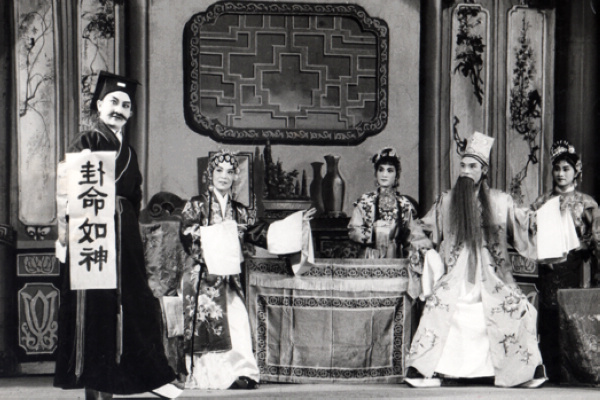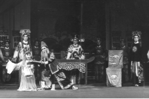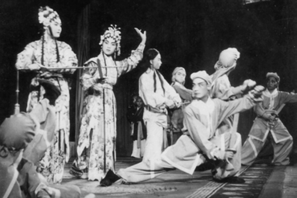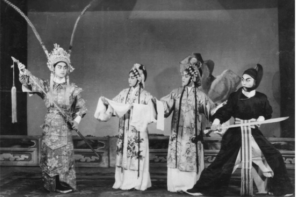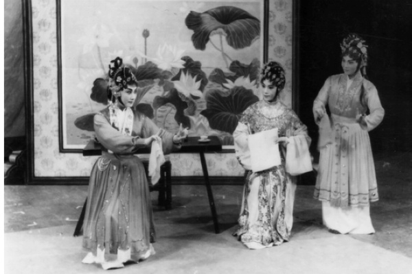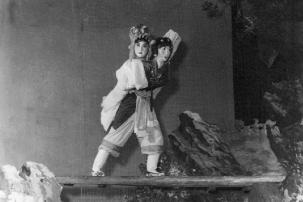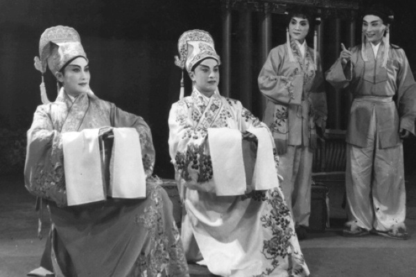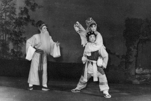 1965年演出的《补镬》剧照。右一是饰演李小聪的张祖基,左一是饰演刘兰英的陈小珠。