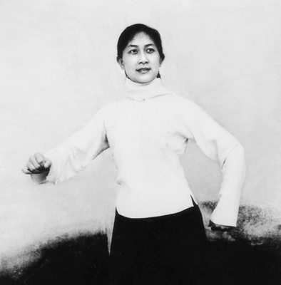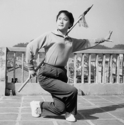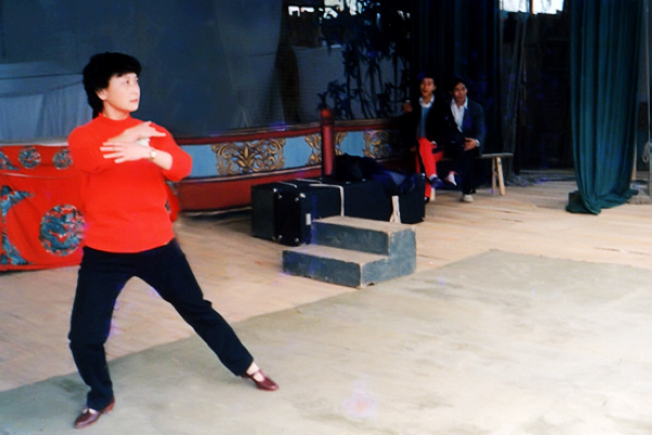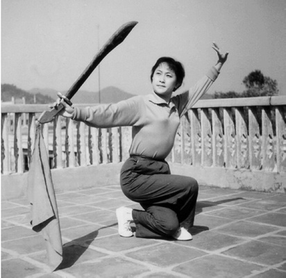 1960年被授予自治区先进工作者称号,会议期间与广西杂技团演员切磋技艺。 《杨门女将》一剧是龚平章根据京剧电影改编的,我饰演“穆桂英”,因小师姐利飞饰演的“佘太君”已担了重头戏,更有何淑玲演的“杨七娘”和师妹们演的众女将,已增色不少,故此我倒轻松了很多。当时我体重只有30多公斤,个子不高,穆桂英前面是青衣,着披风;后面是武将,穿大靠,扎背旗。我只好将所穿的船底鞋垫高了一寸半,所以走起台步,跑起圆台比穿平底鞋辛苦多了,幸好圆台功我练得早,有些心得,只要再适应一下便无妨了。有了脚下功夫,再演“母子对阵”的对打,“探谷”一场的马荡子,尾场的开打“埋荡子”就不难了。另外,每个“亮相”都配合在鼓点节奏上,这样,一个威风凛凛的巾帼英雄便活灵活现地跃然在舞台上了。