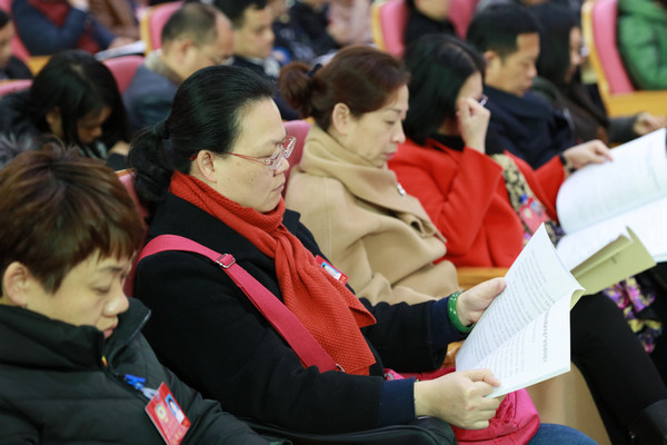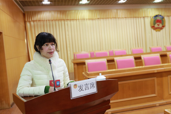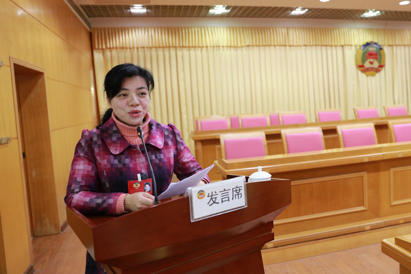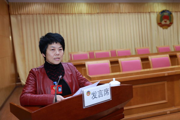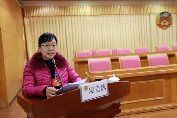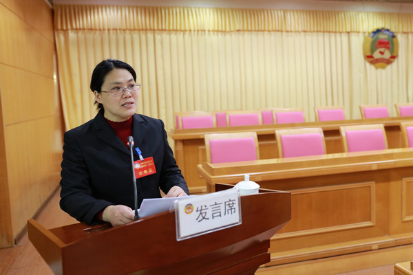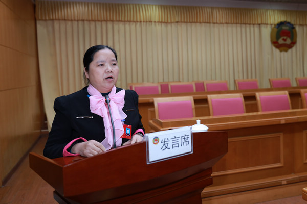 覃明兰委员作题为《关于将校园欺凌事件纳入合理司法程序的建议》的发言。