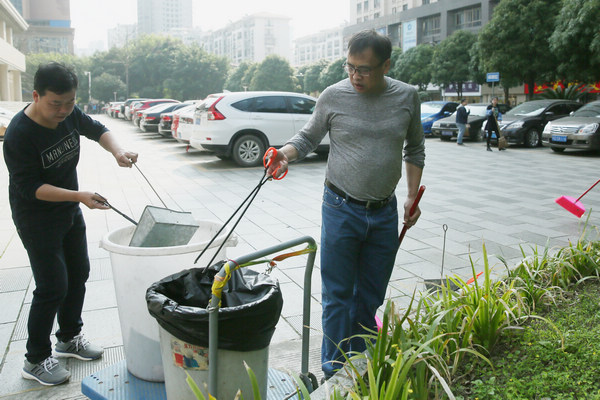 市政协机关干部职工在打扫责任区内的卫生死角。