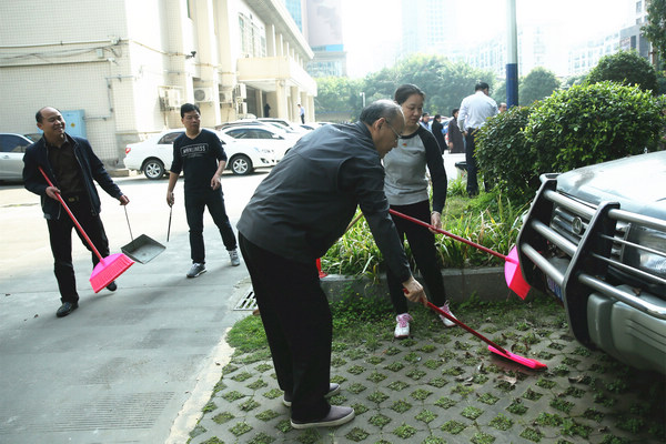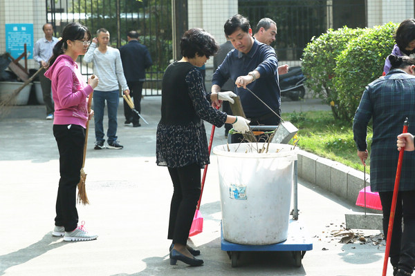 市政协干部职工到责任区内打扫卫生。