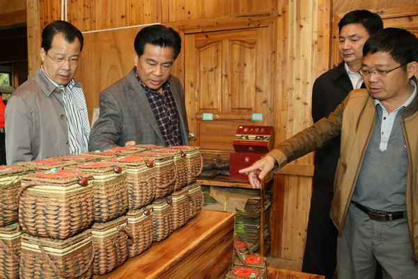 云浮市政协主席黄达辉(左二)率调研组在藤县石表山景区考察生态旅游项目