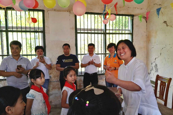 市工商联主席钟雁与建新小学的同学们欢乐互动。 5月30日,市工商联主席钟雁、副主席李文海,市工商联执委、太平人寿保险梧州中心支公司高级经理聂初云,车便捷科技有限公司董事长董小权,来到藤县新庆镇建新小学山口分校,兑现一年前向孩子们的那一声承诺。 山口分校地处偏僻山冲,因为叔叔阿姨们的到来,校园充满了欢声笑语。在去年的“六一”前夕,他们认识,从此结缘,去年的新书包现在还爱不释手,今天,亲切的叔叔阿姨们又为同学们送来了篮球、羽毛球、笔盒、水杯、雨伞等“六一”儿童节礼物,满心的欢喜写满了一张张天真烂漫的脸庞。 在建新小学教室内,叔叔、阿姨及同来的哥哥、姐姐们与老师、同学们欢聚一堂,一起唱歌、朗诵古诗词、讲故事、玩自拍、欢乐互动,寓教于乐,钟雁鼓励同学们要热爱祖国、热爱家乡、热爱学校,懂得感恩,好好学习,健康成才。聂初云则以自身成长的经历,勉励孩子们不要自卑,靠努力奋斗改变命运,并再一次庄严承诺:明年还将再来,至少五年,要见证同学们的成长成才! 当了解到山口分校老师20年来都是靠挑水给学生喝时,董小权为此立刻承诺,要为学校打一口干净的水井!“少年强则国强……”山口小学的53名孩子是一个缩影,尊师重教助学,我们责无旁贷。 (市工商联) |